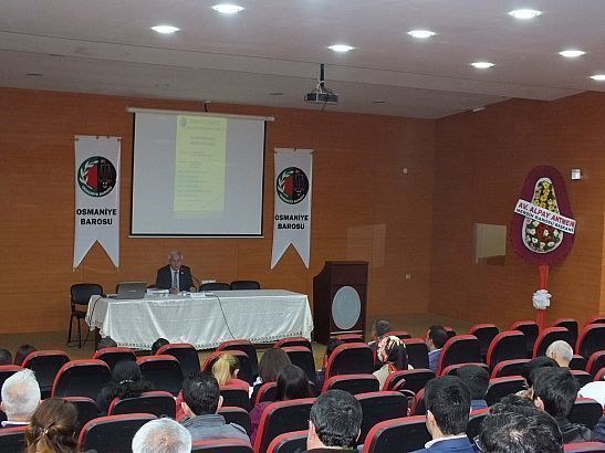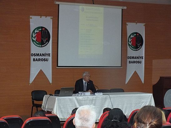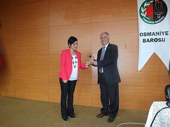 OSMANİYE BAROSU EV SAHİPLİĞİNDE AİLE MAHKEMELERİNDE YARGITAY UYGULAMASI SEMİNERİ GERÇEKLEŞTİRİLDİ   Baromuz tarafından 02.05.2015 tarihinde Osmaniye Ticaret Ve Sanayi Odası Konferans Salonunda Yargıtay 2. Hukuk Dairesi Başkanı Ömer Uğur GEÇCAN'ın konuşmacı olarak katıldığı " Aile Mahkemelerinde Yargıtay Uygulaması " Semineri Baromuza kayıtlı Avukat,Stajyer Avukat ve Adliye Hakimlerimizin katılımı ile gerçekleşmiştir.Seminer sonunda katkılarından dolayı Yargıtay 2.Hukuk Dairesi Başkanı Ömer Uğur GEÇCAN'a Baro Başkanımız Av.Dilem AKSOY Plaket takdim etmiştir.