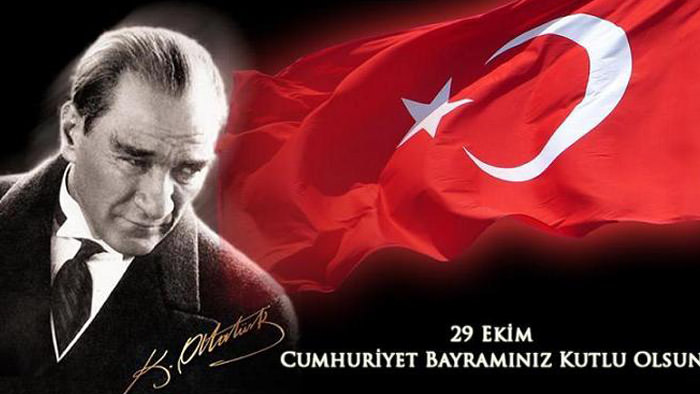 Milletimizin Ulusal Bağımsızlığını kazanabilmek için emperyalist güçlere karşı giriştiği milli mücadelenin ardından elde edilen büyük zaferin sonucu olan Cumhuriyetimizin 94. yıl dönümünü kutlamaktayız. Cumhuriyet, bizi millet olarak yıllardır bir arada tutan, toplumsal birlik, beraberlik ve toprak bütünlüğümüzü sağlayan en önemli kazanımdır. İşte bu duygu ve düşüncelere en çok ihtiyacımız olan şu günlerde Cumhuriyete sahip çıkmak; ülkemize, vatanımıza, kardeşliğimize sahip çıkmaktır. Cumhuriyet düşmanlarına karşı, birleşmeli, laik, demokrasiye ve insan haklarına inanan, adaletin yılmaz savunucuları olarak çocuklarımızı Atatürk ilke ve inkılapları doğrultusunda gelecek nesillere hazırlamalıyız. Cumhuriyetimizin 94. yılını kutladığımız bu günlerde ülkemiz zor günler geçirse de milli mücadelede şanlı zaferlerle çıkmış milletimiz gelecek günlere büyük bir ümitle yürümek kararlığı içerisindedir. Türkiye Cumhuriyetini barış ve özgürlük dolu bir geleceğe taşımak için hiç şüphesiz birlik ve beraberlik içerisinde Atatürk ilke ve devrimlerine sahip çıkmak zorundayız Vatanımızın bölünmez bütünlüğüne ve ulusumuzun birliğine her zamankinden daha büyük bir önemle sarılmak azmindeyiz. Bu duygu ve düşüncelerle Cumhuriyetimizin kurucusu Büyük Önder Atatürk’ü ve silah arkadaşlarını,vatanları uğruna kanları toprağa dökülen aziz şehitlerimizi rahmet ve minnetle anıyor,Cumhuriyet Bayramınızı yürekten kutluyoruz.